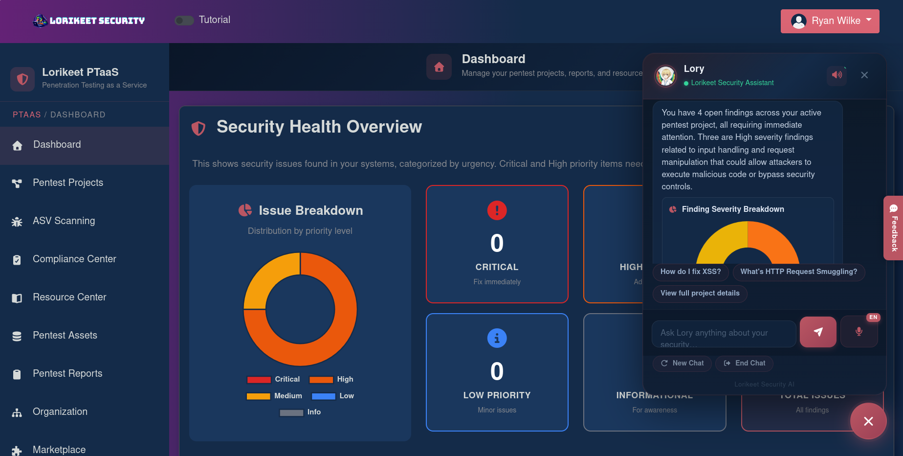 Lorikeet prioritizes the "Dev" in DevSecOps. Instead of vague descriptions, findings come with technical, step-by-step remediation guides tailored for developers. The inclusion of Lory, the AI assistant, means developers can ask, "How do I fix this specific SQL injection in my Node.js backend?" and receive context-aware advice. The platform's interface is intuitive, moving away from the "security-expert-only" aesthetic toward a clean, actionable dashboard that fits into modern agile cycles.